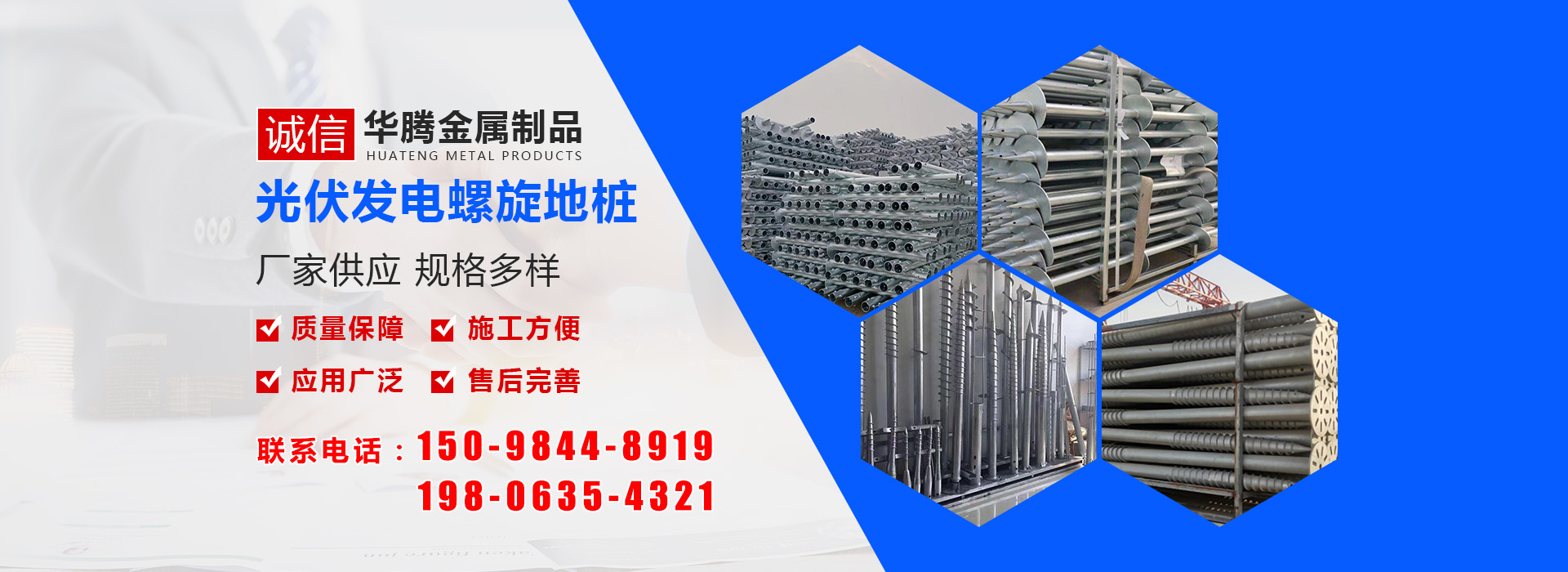 華騰金屬制品 (山東) 有限公司是螺旋地樁定制銷售公司,主營光伏螺旋地樁、光伏地樁等產(chǎn)品所生產(chǎn)的光伏螺旋地樁品種規(guī)格齊全,并可根據(jù)客戶的需求、圖紙、樣品研發(fā)產(chǎn)品。多年來我們以優(yōu)良的服務(wù)及高精端產(chǎn)品贏得了國內(nèi)外廣大客商的贊譽(yù)及肯定,光伏螺旋地樁等產(chǎn)品廣泛應(yīng)用于光伏太陽能電站樁基、房屋建筑樁基、...…